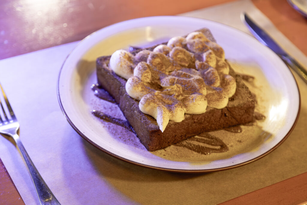 Ζεστό french toast που συναντά το τιραμισού, με βελούδινη κρέμα μασκαρπόνε, σαβαγιάρ, άρωμα βανίλιας, εσπρέσο και λικέρ αμαρέτο